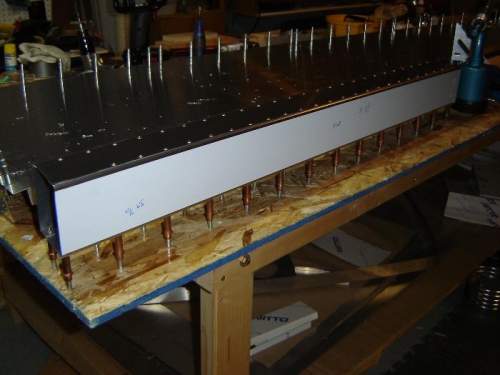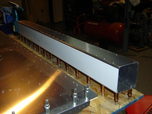 Finished assembly of the #1 crosstie box. The bottom cover will be riveted later after the attach point hardware is installed and torqued because the box will cover it.