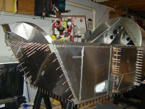 Up drilled all of the holes in the floor and lower firewall. Then it was on to aligning and drilling the upper firewall into place. Took some trimming on the edges of the upper firewall slots that clear the longerons as well as trimming of the ends of the strap. This was difficult because there really is no good way that I could come up with to hold the upper firewall at the exact angle needed. Another time killing session by the upper firewall.