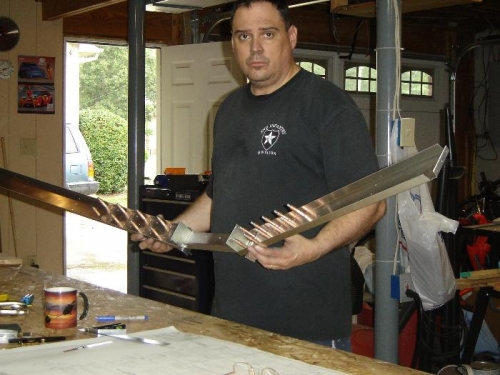 Horizontal stabilizer forward spar. Took a lot of time setting up the drill press to make sure that the 1/4" holes in the machined spar fitting were drilled accurately.