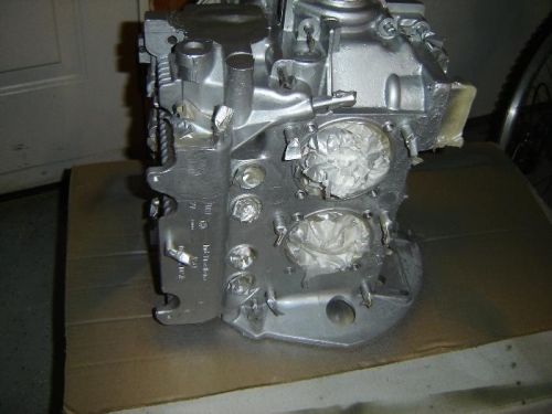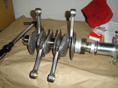 Completed assembly of the camshaft, attached the rods to the crankshaft and prepped and painted the case halves. I used silver paint rather than black as called for simply because the parts store had the high temp silver on sale and I thought it would look good with all of the red annodized parts in the kit.