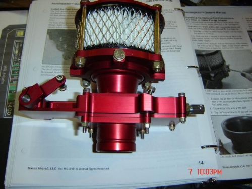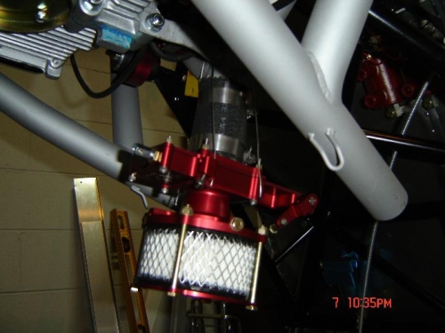 Put the AeroInjector together. Drilled and tapped the mounting to accept the filter assembly. Then mounted the intake pipe, drilled the mounting tab to match the engine block and installed the AeroInjector.