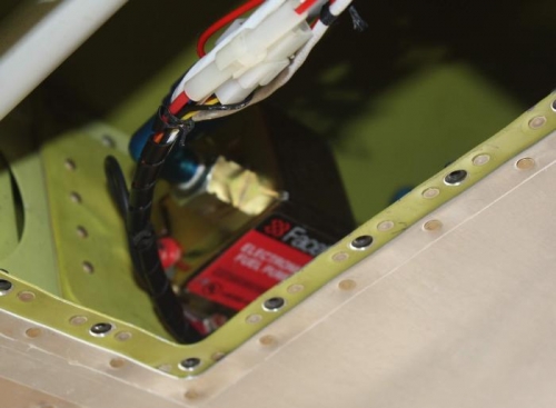 Ops check on the left wing revealed there was no typical fuel pump sound when the fuel pump was activated. A wiring check revealed that power was being delivered to the pump. Another new replacement pump, when wired up made the characteristic sound and even pumped some solvent up. As a result, I replaced the aux fuel pump on the left wing, and the ops check revealed the new unit to be apparently functioning.