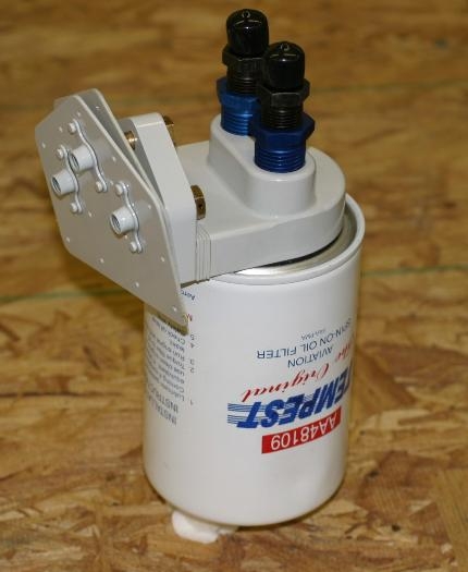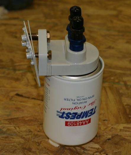 I'm going to use an external oil filter; I bought an Earl's remote oil filter from Summit Racing. The billet aluminum device resulted in the filter being too close to the firewall. I added .25 inch of clearance and drilled a lightening hole in the billet firewall attach portion. I also made a sandwich doubler of .063 to mount it to the firewall so as to prevent too much load on the thin stainless firewall.