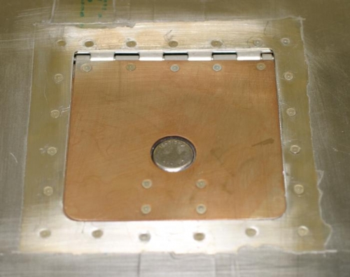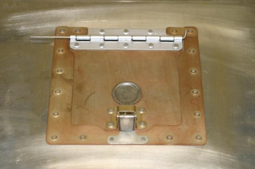 I'm waiting for some other parts, so I made a 4 inch oil inlet access door for the top cowl using a Camloc latch common on some Cessna's.