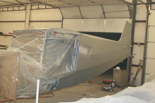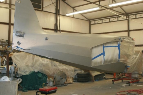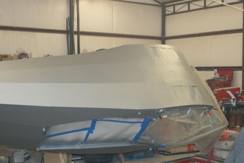 Two coats of clear Poly-Brush, a once over of ironing the tapes and gusset edges again, and one coat of Poly-Spray. I had trouble with my first coat of Poly-Brush, as it made "cotton candy". I'd let the compressor run down, and started the compressor when I started to spray, making small wisps of dried vinyl, because of the warm air in the hose. I contacted Poly-Fiber tech support and they recommended wiping down with reducer, which got rid of most of the "candy". The rest should sand out during the wet sand phase after the next coat of Poly-Spray.