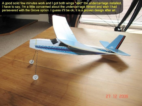 The quickbuild wings were a marvel to behold. Literally no finishing required. Just install and go. Even the Vans quickbuild wings require you to mess around for a week on each one installing flaps and ailerons and things. Since the Kid Flyer is going to be Day VFR only, I didn't have to worry about lights and stuf either. Cool :-)