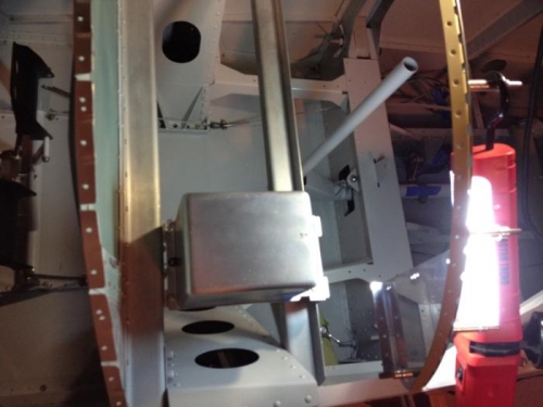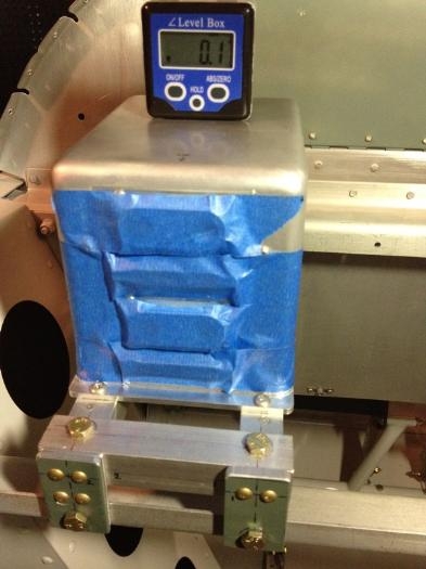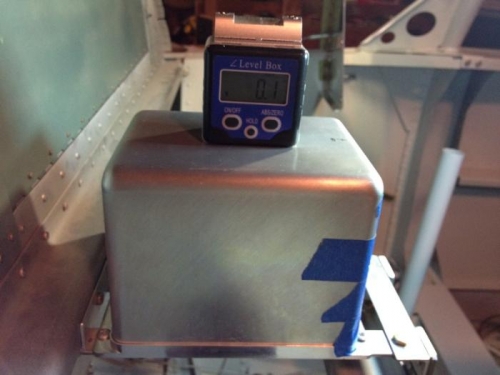 Mounted the GRT dual AHRS unit. The box is relatively small and can be mounted in a few different locations. Many mount this in the tail cone spanning the longerons, but the turtle deck comes riveted in my quickbuild kit (this is not the case I believe in current kits) so access to the tail cone is not good. I choose to mount the unit as shown just forward of the instrument panel. Pros and cons both ways. The bracket is robust and with it bolted to the fuselage cross braces, it should see very little movement. The matching remote compass units that individually pair with each AHRS unit will be wingtip mounted. I was able to get the AHRS leveled to 0.1* as shown on the digital level.