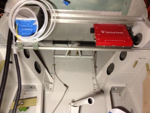 Mounted the VP-X Pro to the fuselage cross braces opposite of the AHRS units. In hindsight, I should have mounted this unit on the centerline of the aircraft to allow more room for wiring harnesses. This area is crowded with the BFD and radio stack above it. The VP-X can be mounted anywhere in the airplane, with the obvious requirement to protect it from water intrusion (the box is not sealed).