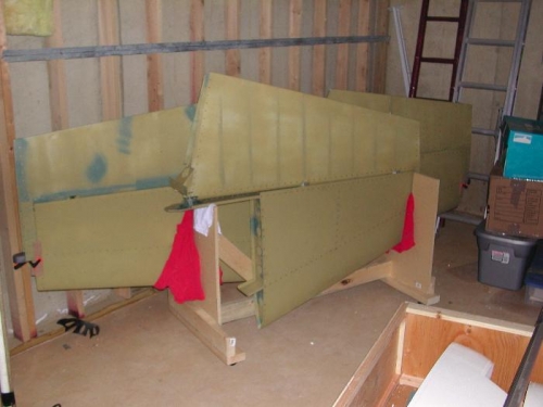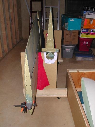 i built a cradle to store the empennage. the cradle is similar to the wing cradle with casters to facilitate moving as needed. other than the fiberglass end caps, the empennage is now complete. time for the wings....