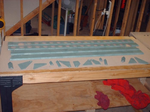 finished match drilling the flap brace and aileron gap fairing to the skins. machine countersunk the flap brace since it is sandwiched between the wing skin and the flap piano hinge. deburred. dimpled the aileron gap fairing, and the wing skins for the fairing and the flap brace. cleaned and deburred everything. primed all parts with SEM brand self-etching spray can primer instead of mixing just a small batch of vari-prime.