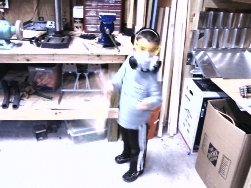 Tanner in full personnel protective equipment. He loves his yellow safety glasses.
