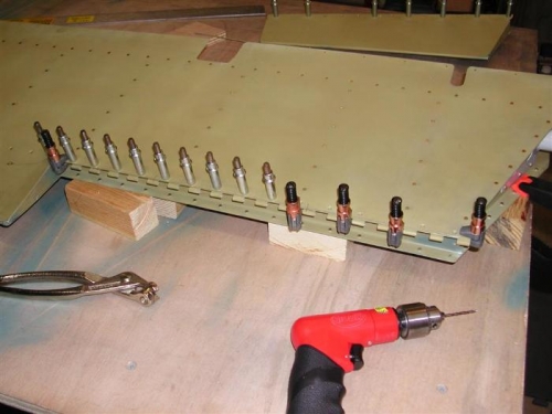 aligning the trim tab hinge was a bit of a chore. it's an iterative process until the trailing edges are aligned, then the inboard edge. holding the piano hinges securely in place for drilling was more difficult than i anticipated. i used side clamp clecos and inserted a cleco in each hole as it was drilled.