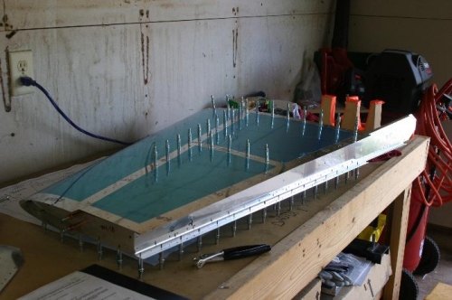 Drilled uper VP410 holes. Prepaired ribs and clecoed ribs to spar and the VP901 skin to ribs
