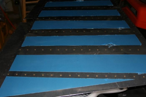 Clecoed R901L/R rudder skins to ribs and spar, Fbed R918 rudder bottom edge. Match drilled and deburred all parts, fabed the R710 rudder brace. Dimpled and machine countersunk all holes in rudder.
