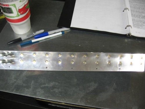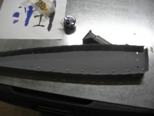Tiveted stiffners to bottom of elevator skin. Rivetd E904/E913 assembly tospar. Tiveted skin to bottom of spar. Riveted root tip ribs,drilled AEX wedge to trailing edge and dimpled trailing edge of elevator. Machine countersunk AEX wedge.