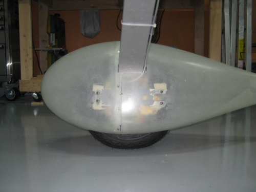 4. Install nutplates at the three #27 holes drill in previous step. Final-drill #40 and countersink the U-00001B wheel fairing aft for nutplate rivets. Deburr the holes. Rivet the nutplates to the wheel fairing aft as per the callouts.
