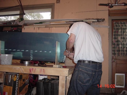 Finished deburring Horizontal Stab Frame peices, Cut and set-up jigs, inserted right HS skin and started clecoing the ribs and front spar.