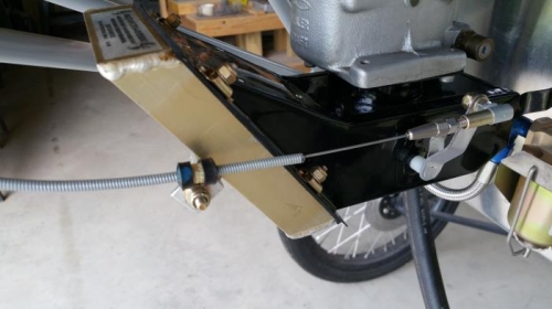 After cutting, drilling and shaping aluminum angle, I was able to trial fit the first engine control cable for the carb heat box. All cables and wiring will be installed prior to installing the fuselage sides so that proper routing can be determined while controls are easily accessible.