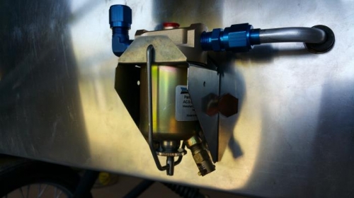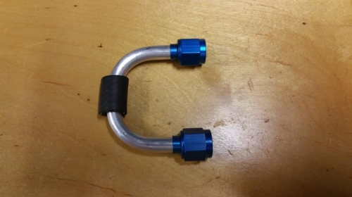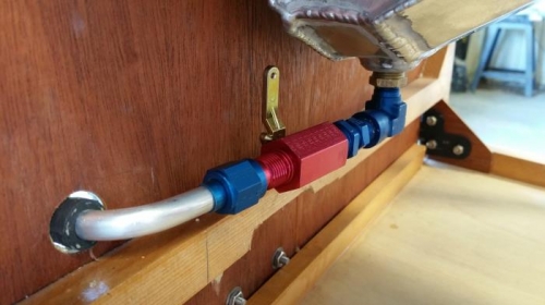 Fabricated fuel line to connect fuel tank to gascolator. My first attempt was an S-shaped line, but I didn’t like that because it left several inches of line flowing uphill (water trap), and the gascolator was positioned too low on the firewall, unnecessarily protruding below the bottom. I repositioned the gascolator and installed a short length of fuel tubing that makes a simple 180*bend from the tank to the gascolator inlet.