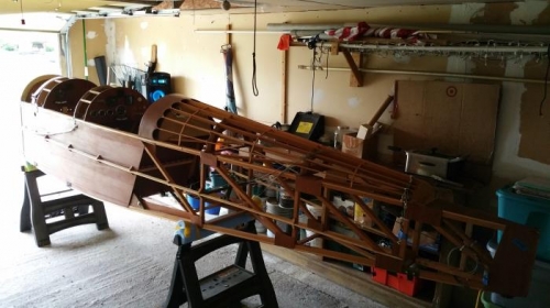 Moved fuselage to the house garage for covering prep.