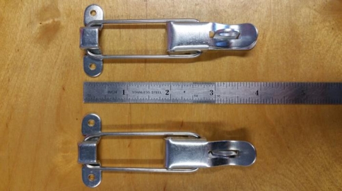 Prior to covering, I needed to determine the mounting position and latch configuration for the center section cover. I have a good set of latches, but the bail was way too short, so I used welding rod to fabricate longer bails, which should work well once I get the hatch fabricated.