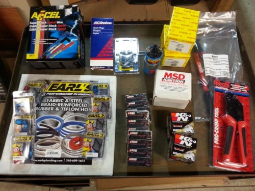 Some of the items I received from Summit Racing... components for ignition system, oil system, valve train, safety harnesses and instrumentation.