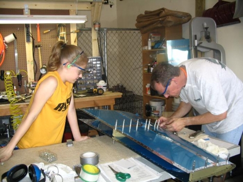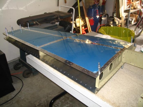 Riveted front spar reinforcing bars to front spar. The part I was concerned about went together OK after I drilled it again. Riveted left horizontal stab skin to structure -- steep learning curve, but riveting went OK.