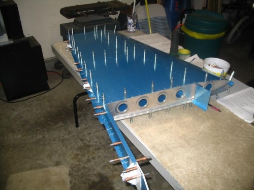 Assembled VS substructure, match drilled all rib to spar holes. Attached skin, match drilled all holes. Broke edge of VS reinforcing bar with Scotchbrite wheel.