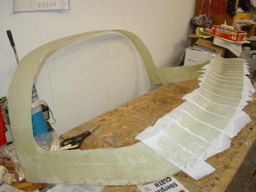 Filling in the low spots on the front of the windshield fairing.