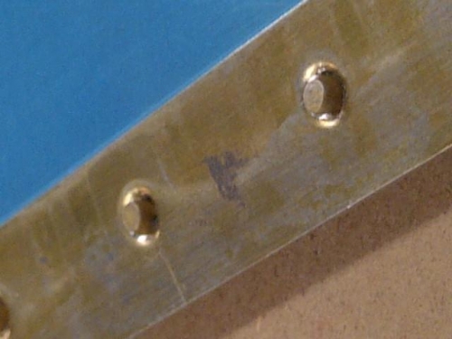 Since I don't trust the tank sealnt to hold things together, I decided to skip ahead to 7-11 and partially set the trailing edge rivets before doing anything else. After some experimentation, I decided to use the hand squeezer, since I have much more control with that. It seemed to go well, the "shop heads" were set down to about 1mm above, the skin. This gave a bit of grip so the rivets didn't move - enough for me to proced with the rest of the assembly in proper sequence. That, and the trailing edge is nice a straight- now I just ha ve to keep it that way when i finish off those rivets.