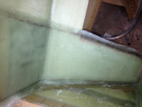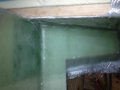 Aft side of forward landing gear bulkhead recieved the required 6 layer UND glass and peel plied.