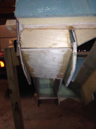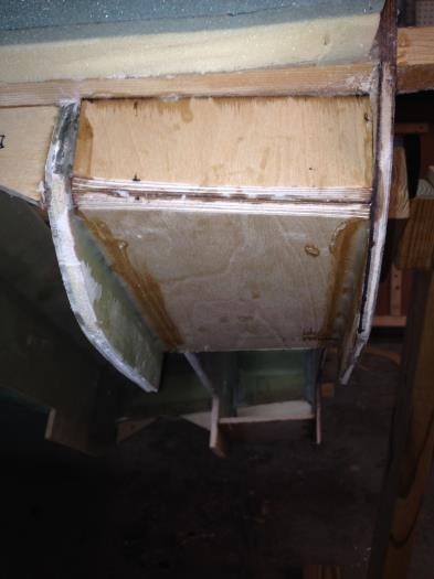 Started cutting & installing plywood inserts between firewall and aft landing gear bulkhead as seen in pictures. Floxed in place and left to cure.