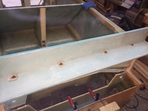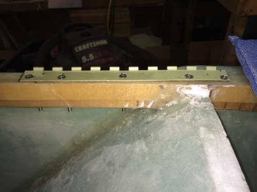 Fabricated shoulder brace from PVC foam and glassed with 2 layers BID. installed nutplate with flox. Cut canopy hinge to length and installed before glassing in shoulder brace.