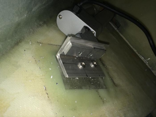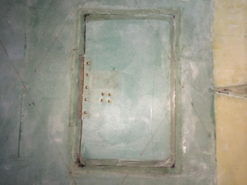 Removed landing brake from fuselage bottom. Installed hinge and laid all layers of fiberglass on fuselage bottom and inside of landing brake.