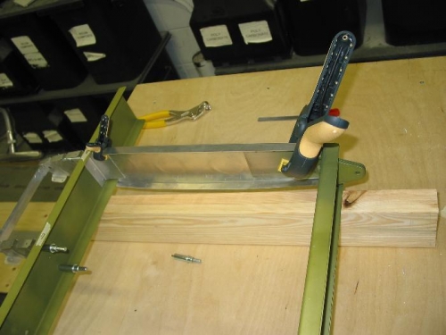 DRILLED #30 HOLES READY FOR RIVETS. WE ALSO LINED UP THE END RIBS.