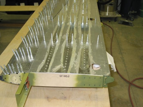 PUT THE SKIN ON AND CLECOED ALL THE RIBS WITH PRE DRILLED HOLES. THE SKIN IS THREE PC'S NOT ONE, LIKE THE INSTRUCTIONS SHOW. AS WELL I DRILLED OUT A RIVET THAT WAS NOT SEATED VERY WELL AND DRILLED IT OUT TOO BIG. THE FIX WAS TO INSTALL A BIGGER RIVET.