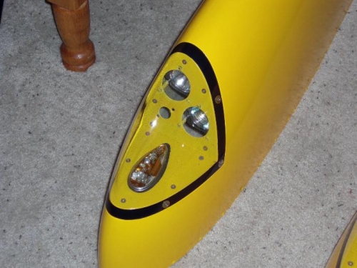 Prep'd, primed and painted the flaps. When first coat was dry I taped and painted the stripes. Added the painted len's to the wingtips. Began final prep for painting the right wing as well.