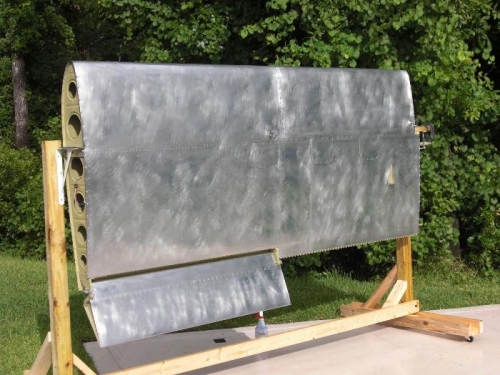 Prep'd the right wing for painting by first ensuring all screws and bolts were installed correctly and inspected the integrity of the wing and flight controls for proper installation and operation. I then closed all access panels and removed the flaps. I used an industrial strength detergent and scotch brite pads to thorougly clean the wing. Then I used an aced etch to prepare for priming. Once the etch was complete I used Stewart System one part primer (white) and primed the wing and aileron.