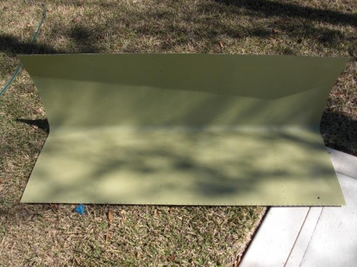 Prepped main and leading edge skins. De-burred, dimpled and applied metal prep to skins. Tappered outboard and inboard skin inboard corners to form scarf joint.