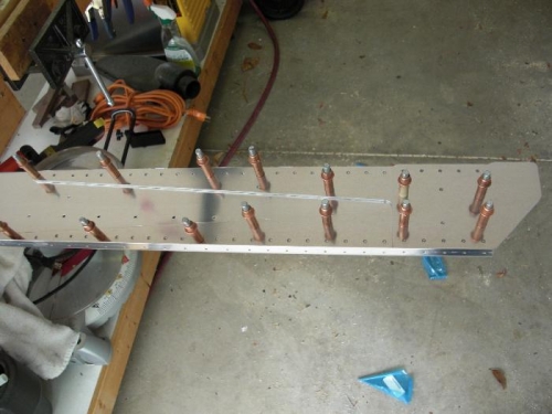 Fabricated right wing rear spar, trial fit, drilled, deburred, and preped all spar holes, backing plates.