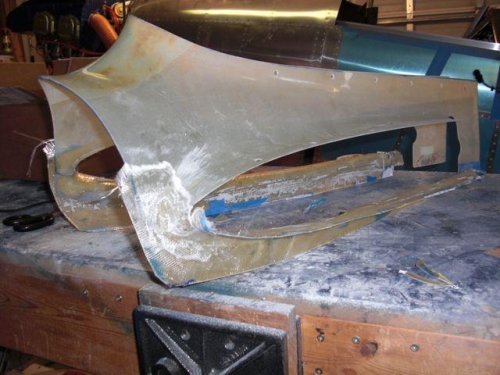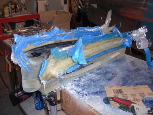 decided I didn't like the stock fairing. I used modeling clay to form a mold along the lower HS stab fuselage gap and used glass and polyester resin to form the lower fairing half. After this set I rough trimed with a cutoff wheel, file and sand paper.