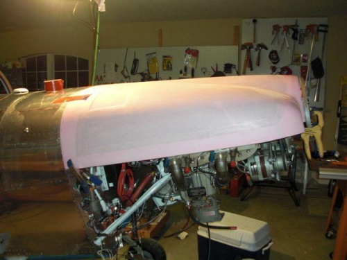 drew a ref line 2" aft of the firwal and held the cowl in place using duct tape as I traced the firwewall line onto the top half of the cowl. used this reference line to cut the top cowl to initial fit.