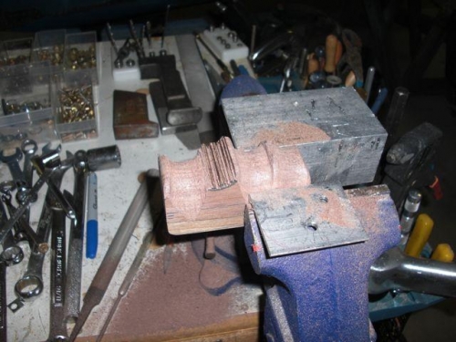 Decided I didn't like the stock throttle grip so I fabricated one from some scrap balck walnut and inserted my starter switch inside.