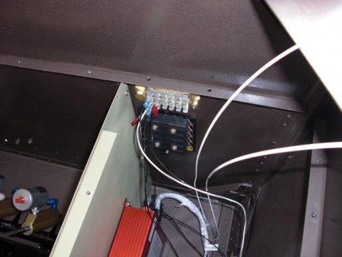 began wiring the fuselage. Installed the VP50 control box and fuse panel in the fwd electrical compartment. Installed terminal strips onto the fwd cross bar.