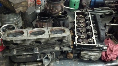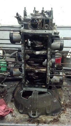 Today I finished the tear down of the Corvair engine. It went well and was relaxing. I needed that. So now I will focus on the clean up and inspection and then start buying parts for it. Today I pulled the heads off then the cylinders and pistons with rods attatched. After that I was able to split the case and remove the cam shaft and crank. I will toss the lifters (new cam will require new lifters) and see if I can stop in at my old shop to use the parts washer to get it nice and clean. If not I will find a shop in town that can help me out. Not much else to say but I did take more than the three pictures you see here.