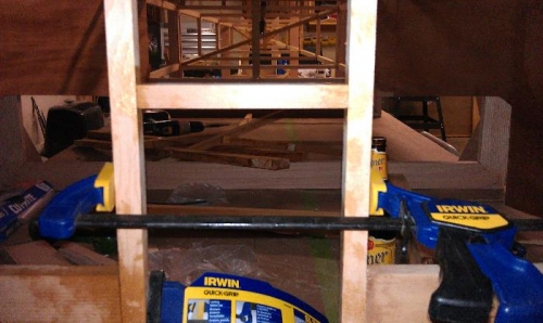 Nose wheel tunnel top member 3/4 x 3/4 inch and 1/2 inch by 3/4 inch former support members glue up