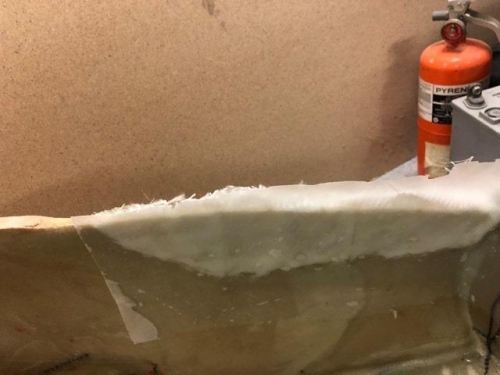 Applied micro, 2 layers of BID cloth, and peel ply to the interior side of the repair.