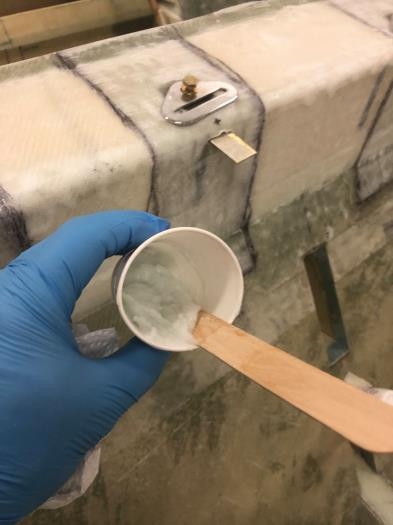 A small batch of flox was mixed using 16g resin and 6g hardner along with some flox.