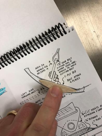 Four 1/4" thick birch plywood inserts were cut and shaped to fit against the longerons as part of the safety belt anchor point assemblies. The front anchor points are located 5" forward of the point at which the bottom longeron and front seatback intercept on both the left and right sides of the fuselage. The rear seatbelt anchor points are located 8 3/4" forward of the forward landing gear bulkhead.