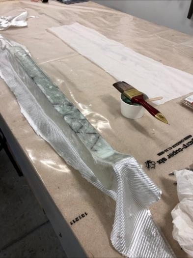 Two layers of BID cloth were applied on with epoxy, followed by peel ply.